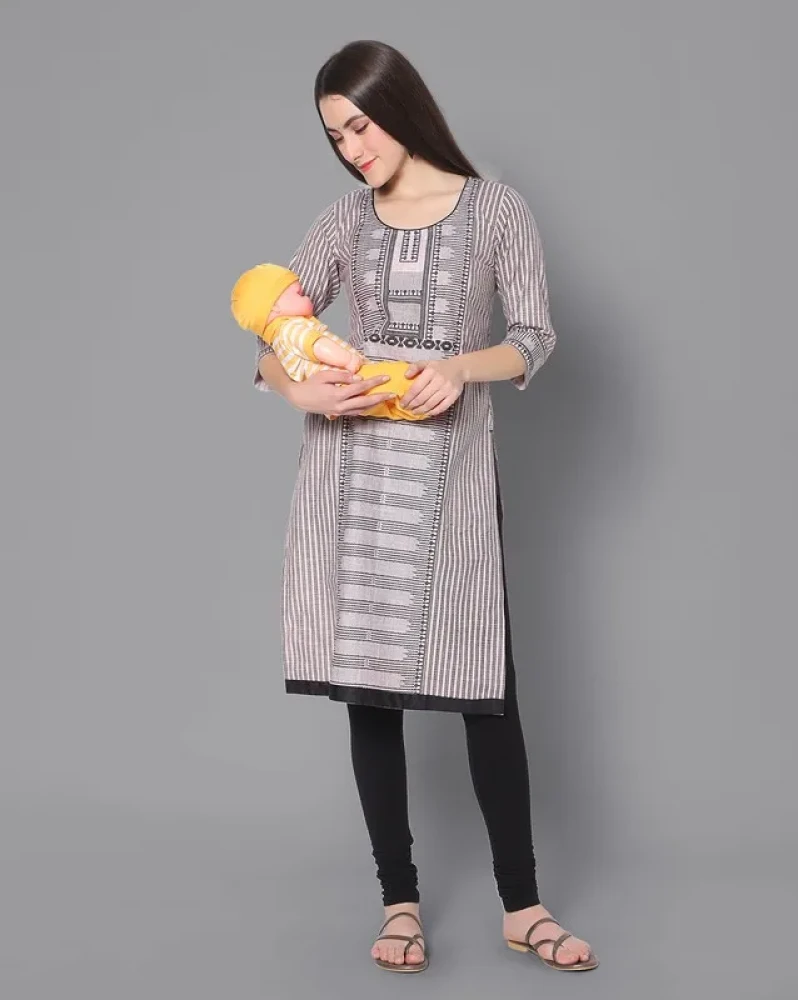 Feeding Topwear For Mothers With Zip: Seamlessly transition from casual outings to formal events with our versatile dress. Whether it's a relaxed day out or a special gathering, our kurtis ensure you look and feel your best, making them essential pieces for your maternity wardrobe. Designed to suit various festivals and celebrations, they offer effortless elegance and comfort for women during pregnancy and beyond, catering to your diverse lifestyle needs.