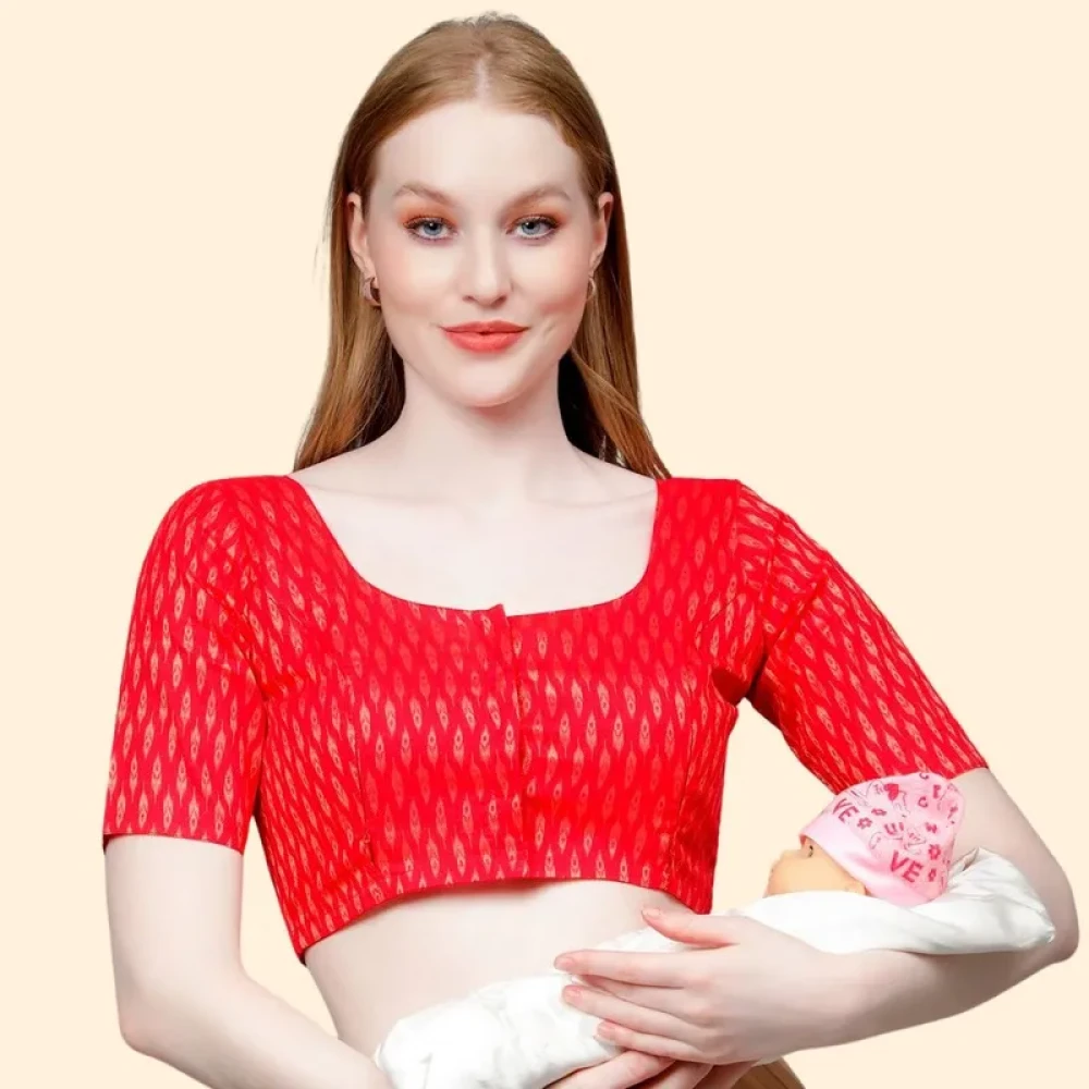 Maternity Saree Blouse For Mother: Experience unparalleled comfort in our Maternity Saree Blouse, crafted from soft, breathable fabrics. The superior quality ensures durability, making these dresses a luxurious and enduring addition to your maternity wardrobe. Functional Feeding Zip For Effortless Nursing: Redefining breastfeeding convenience, our blouses feature a discreet YKK zip, enabling mothers to nurse discreetly.