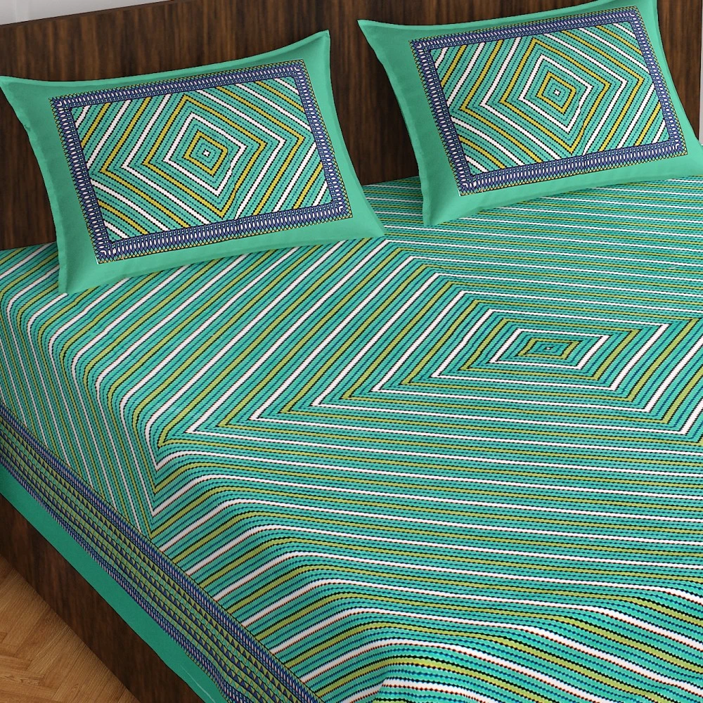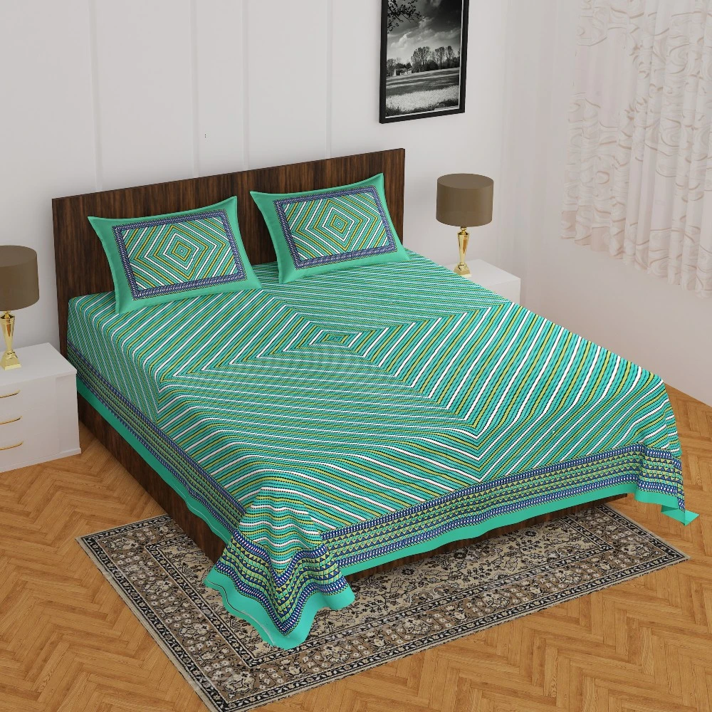 Introducing our Double Size Cotton Bedspread in the captivating and unique shade of C Green, adorned with intricate Jaipuri Prints.