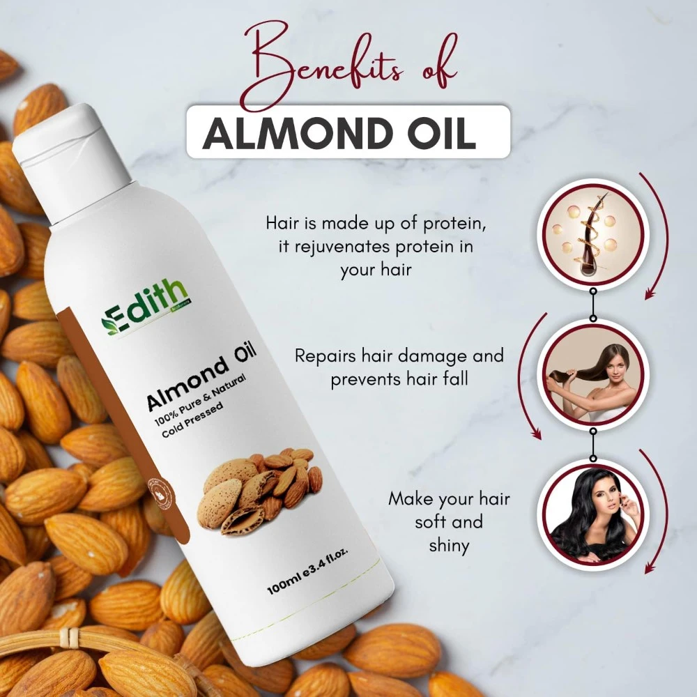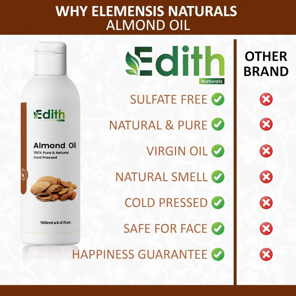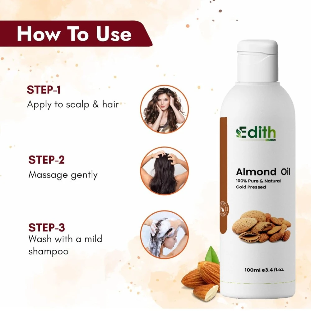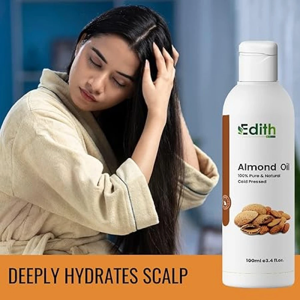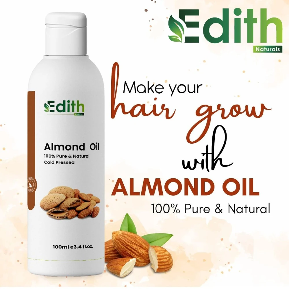 Edith Naturals Sweet Almond Oil Cold Pressed Pure and Natural Moisturizing Oil for Hair Skin and Nails 100 ml