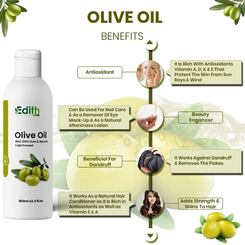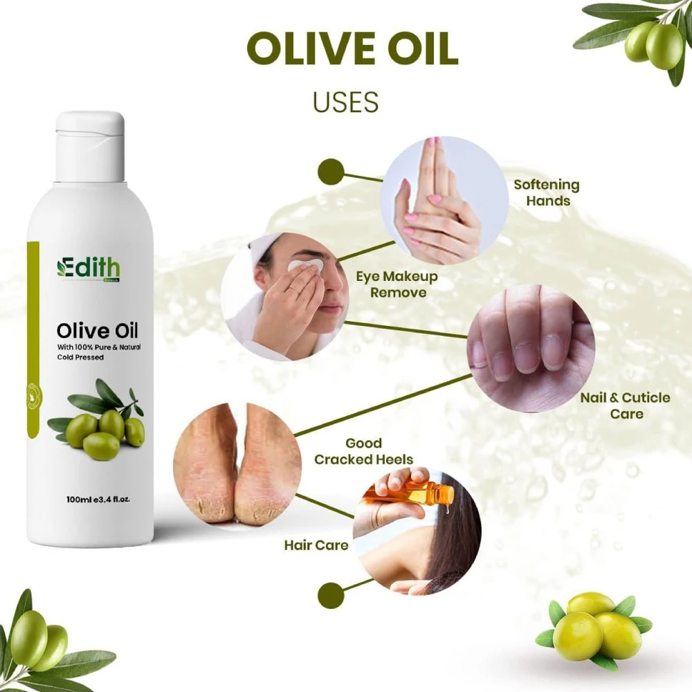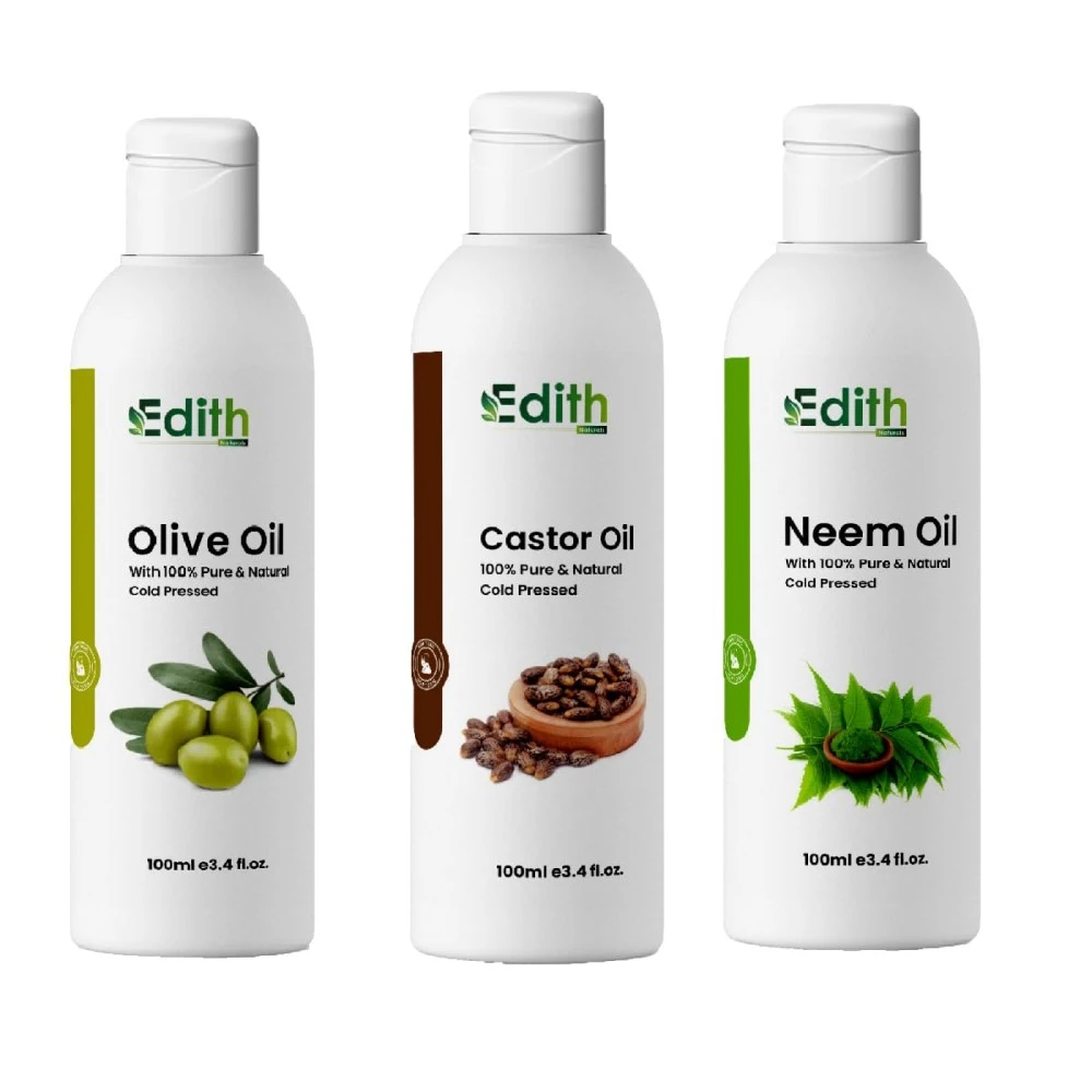 Edith Pure Olive Castor Neem Hair Oil Revitalize Strengthen and Nourish Skin and Hair100ml Each