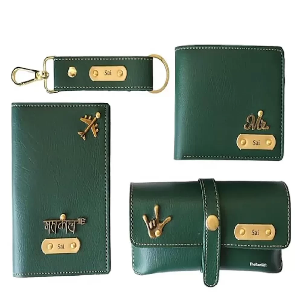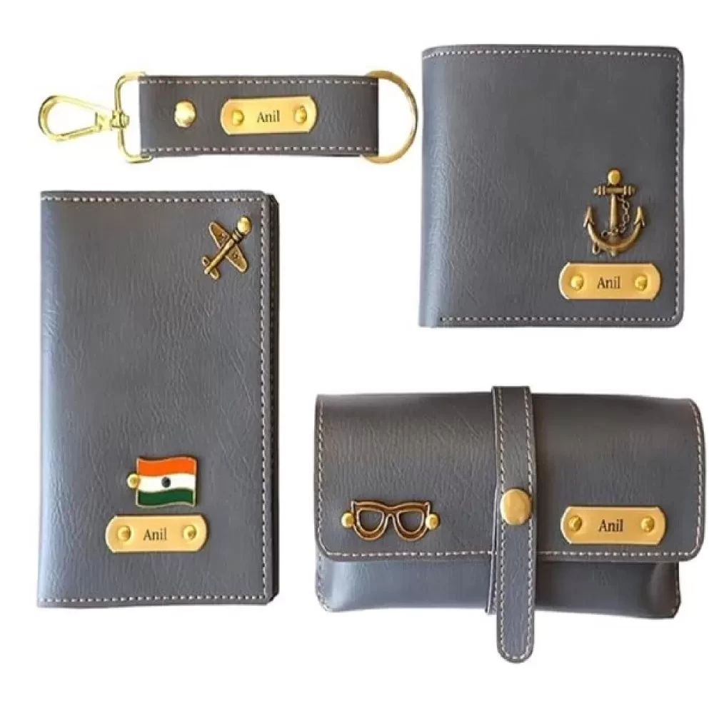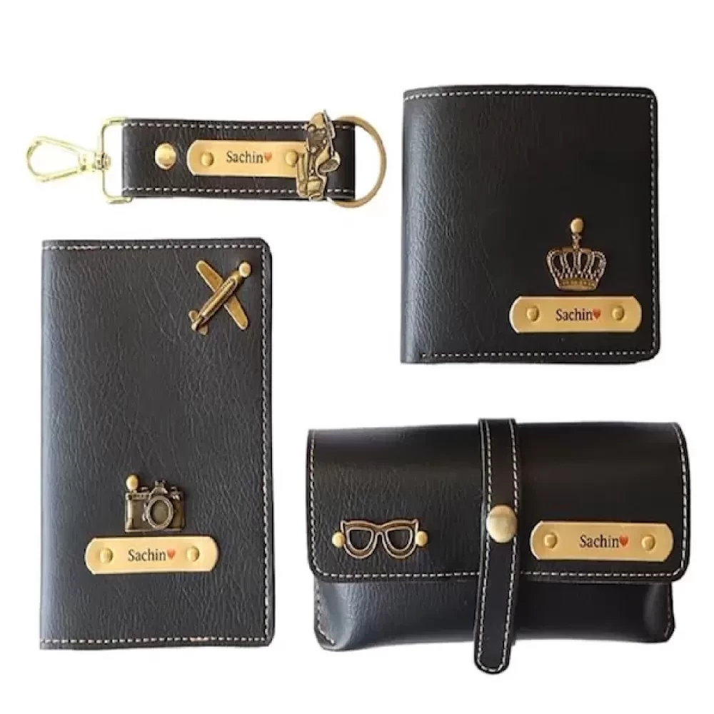 Mens Wallets with Name and Favorite Charm 4 Pcs Combo