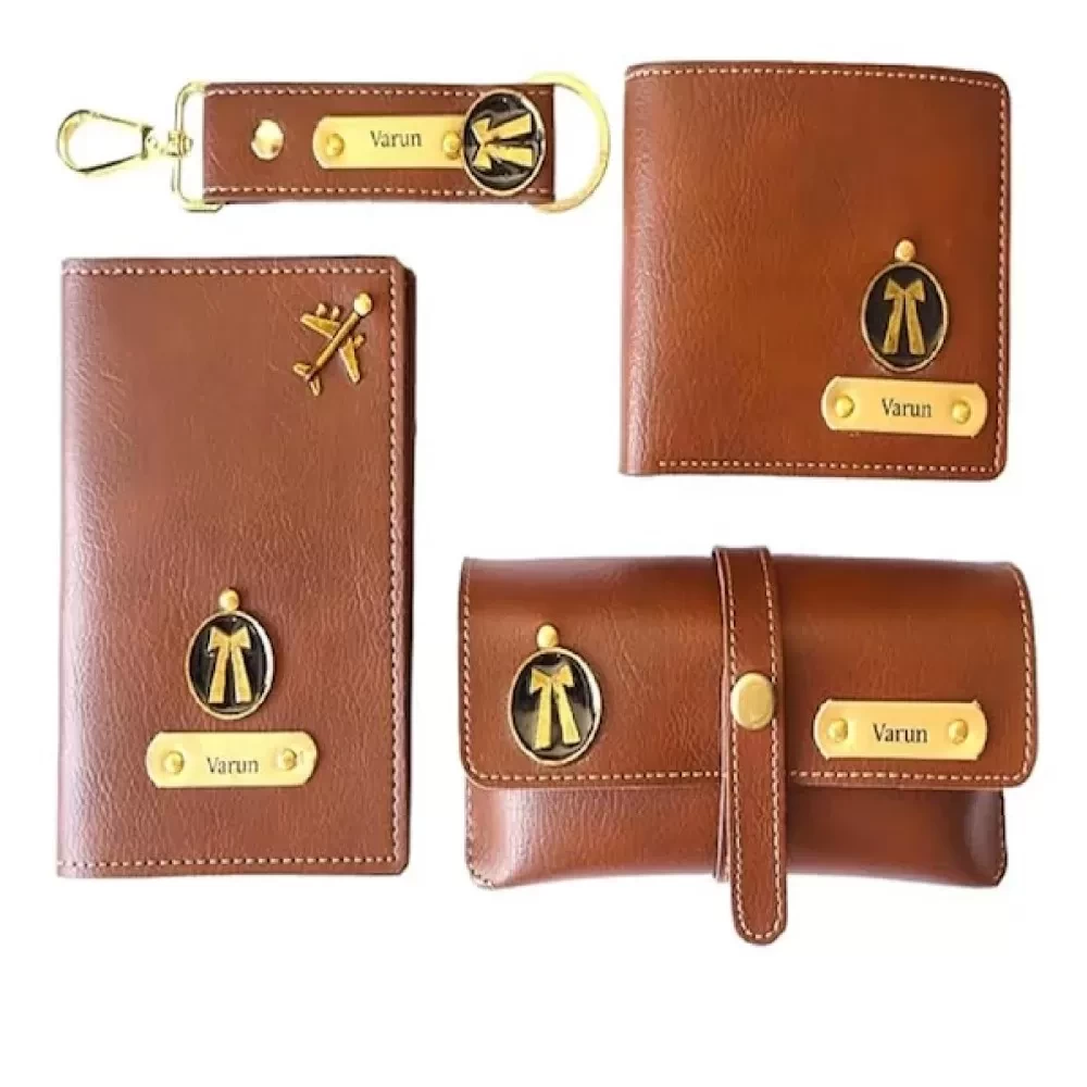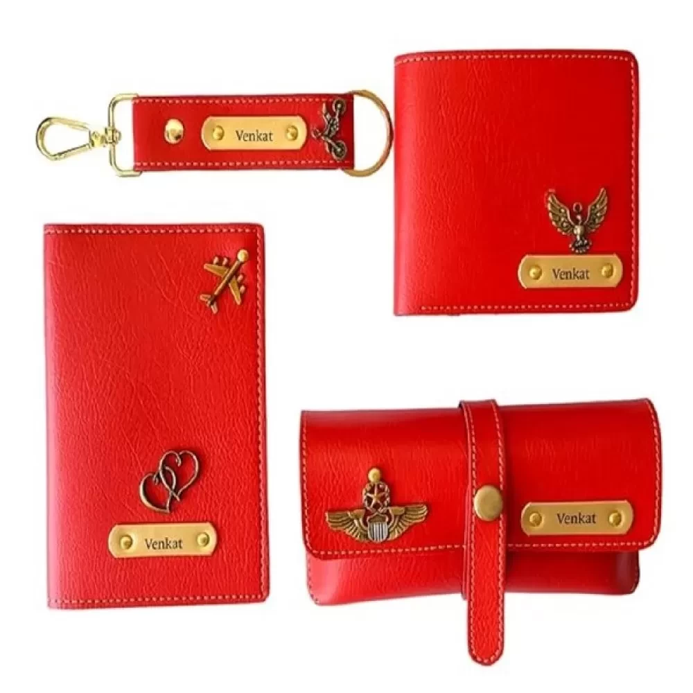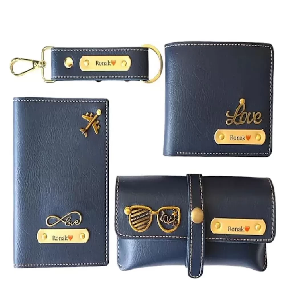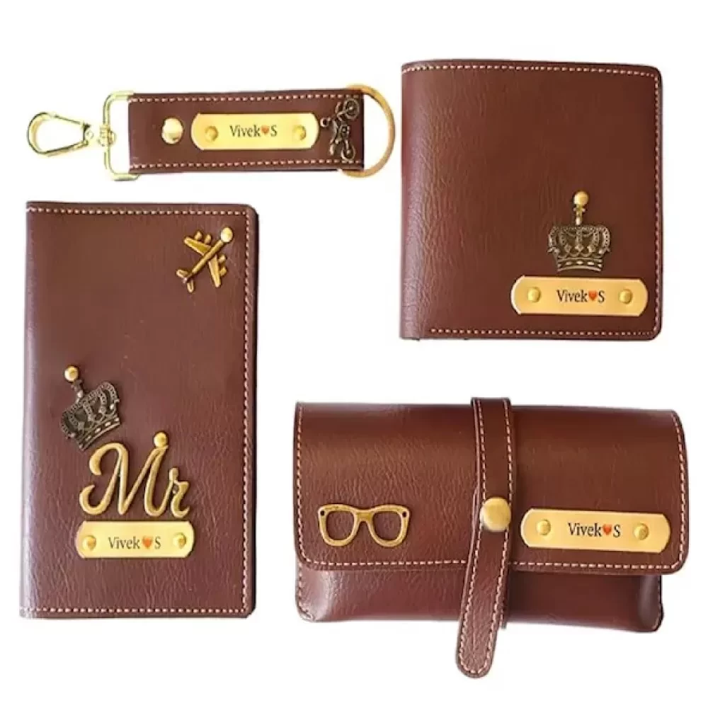 Mens Wallets with Name and Favorite Charm 4 Pcs Combo