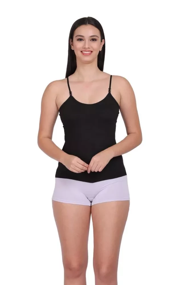 100% cotton fabric. anti bacterial and sweat absorption fabric.  Premium quality cotton camisole slip for Women which can be used as casual wear, fusion wear,  or formal wear. It comes with perfect stitching and perfect fit with solid color which never fades away. This cotton strap camisole comes with adjustable straps is designed to provide absolute comfort and body fit.
