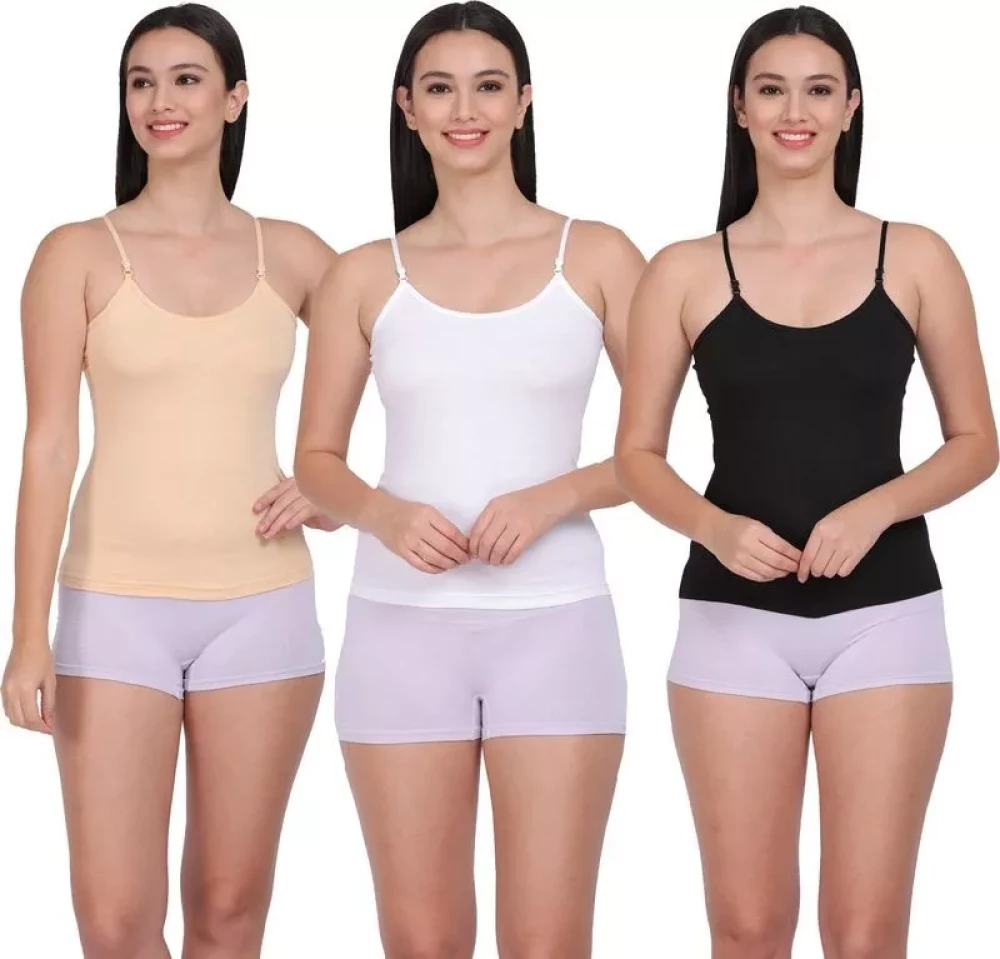 100% cotton fabric. anti bacterial and sweat absorption fabric.  Premium quality cotton camisole slip for Women which can be used as casual wear, fusion wear,  or formal wear. It comes with perfect stitching and perfect fit with solid color which never fades away. This cotton strap camisole comes with adjustable straps is designed to provide absolute comfort and body fit.