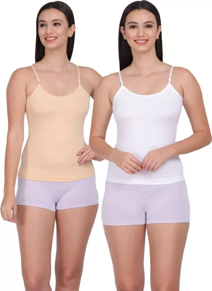 100% cotton fabric. anti bacterial and sweat absorption fabric.  Premium quality cotton camisole slip for Women which can be used as casual wear, fusion wear,  or formal wear. It comes with perfect stitching and perfect fit with solid color which never fades away. This cotton strap camisole comes with adjustable straps is designed to provide absolute comfort and body fit.