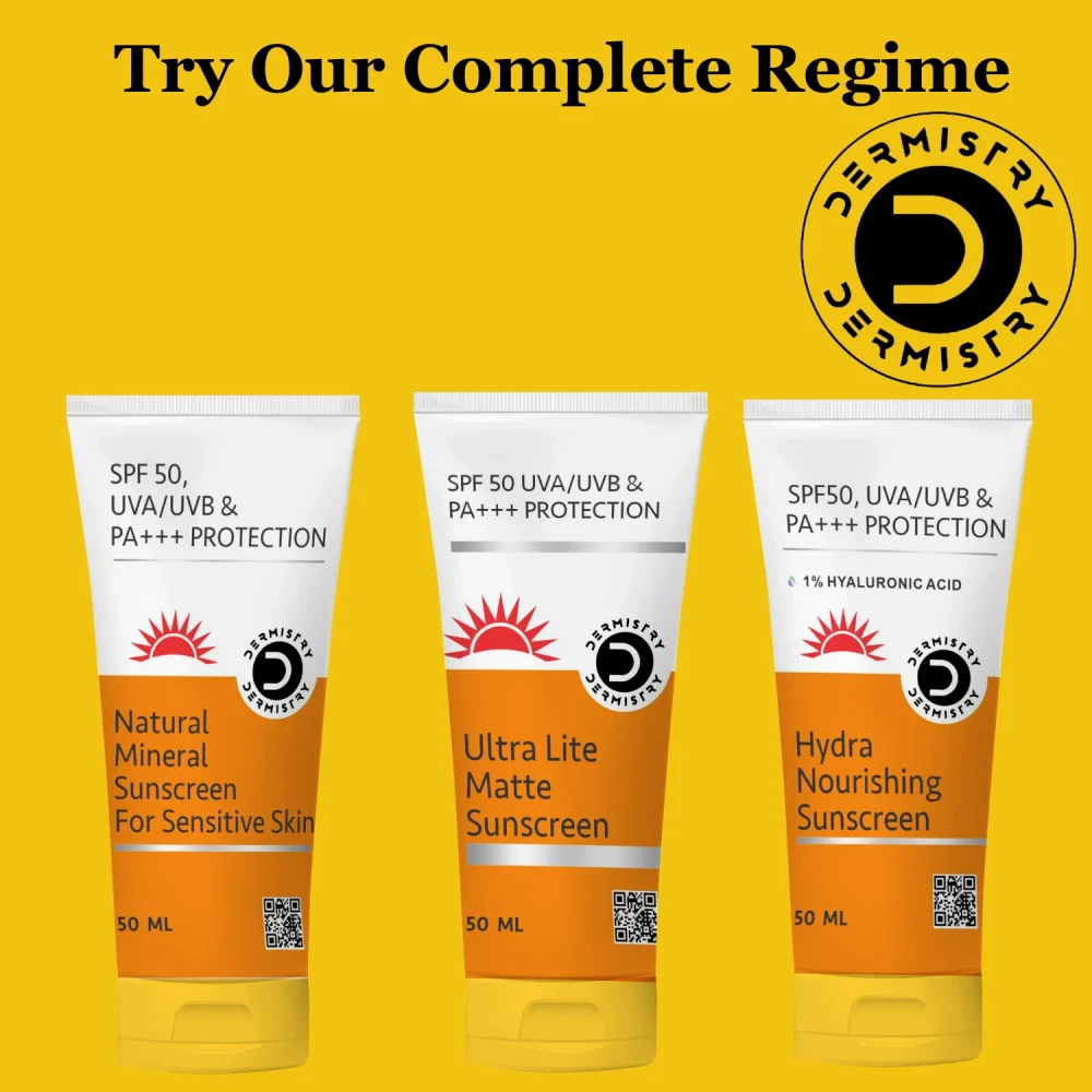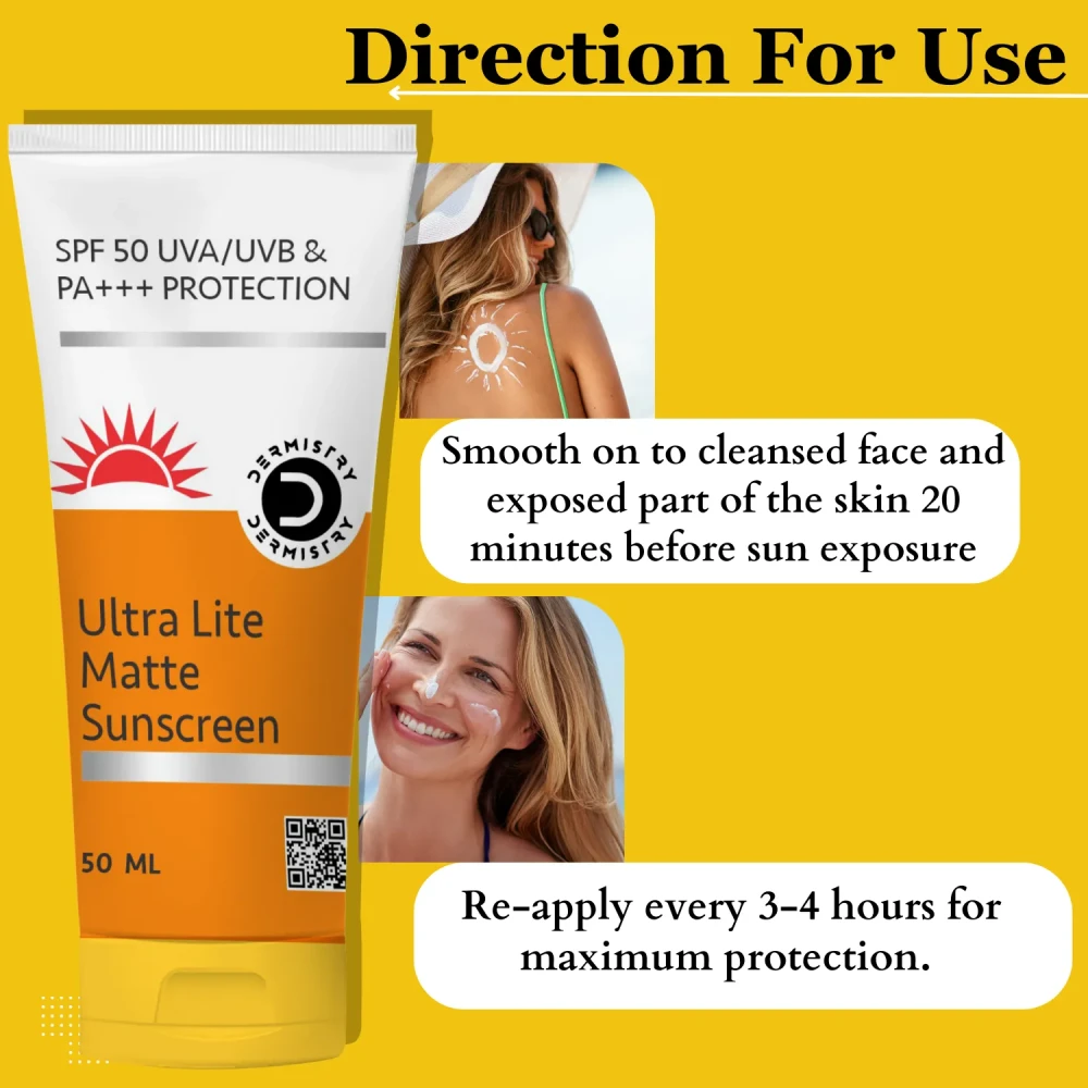 Dermistry Ultra Lite Matte Sunscreen SPF 50 is a specific type of sunscreen that offers a high level of sun protection with SPF 50 while providing a matte finish.