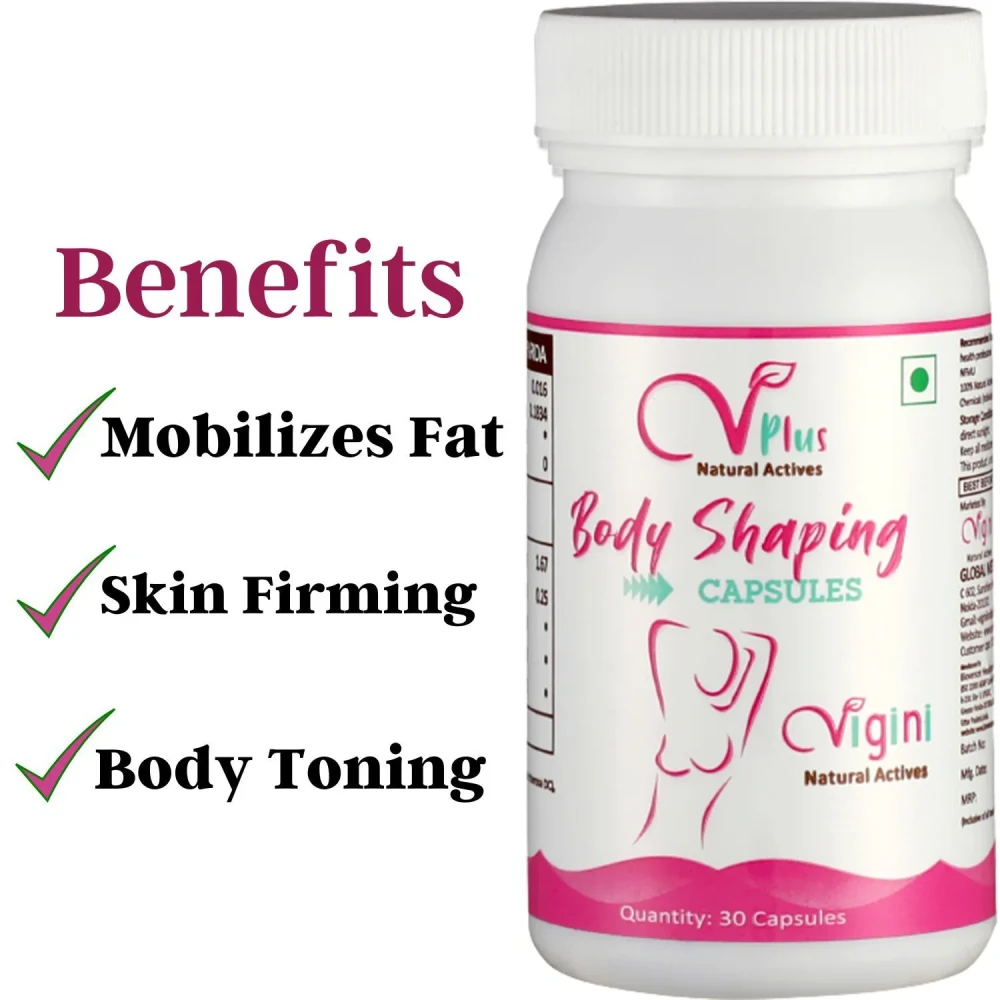 Vigini Vplus Body Shaping Capsules with fenugreek, shatavari, creatine, fennel and vidarikand is made with Ayurvedic, powerful and safe ingredients This capsule is a unique blend of 100% natural actives formulated to increase elasticity, tighten, and provide a firm, toned bust and body.
