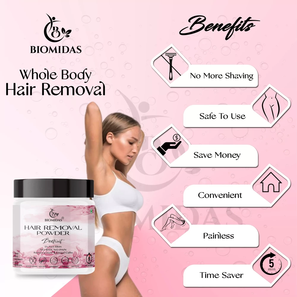 Biomidas Activated Hair Removal Powder Beetroot Fragrance For Men and Women 200 gms