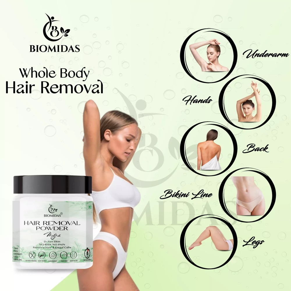 Biomidas Hair Removal Powder Is a Permanent Solution for Removing Unwanted Hair From your Body. This Powder Helps in Removing Hair Without any Pain. This powder helps in removing Hair Gently. Take this powder in a bowl according to your usage and then add a few Milk/water drops and make a thick paste of it and apply on that part of your body from where you want to remove your hair. Wait for 2-3 minutes and let it dry. Then clean it with water and apply moisturising cream on that part.