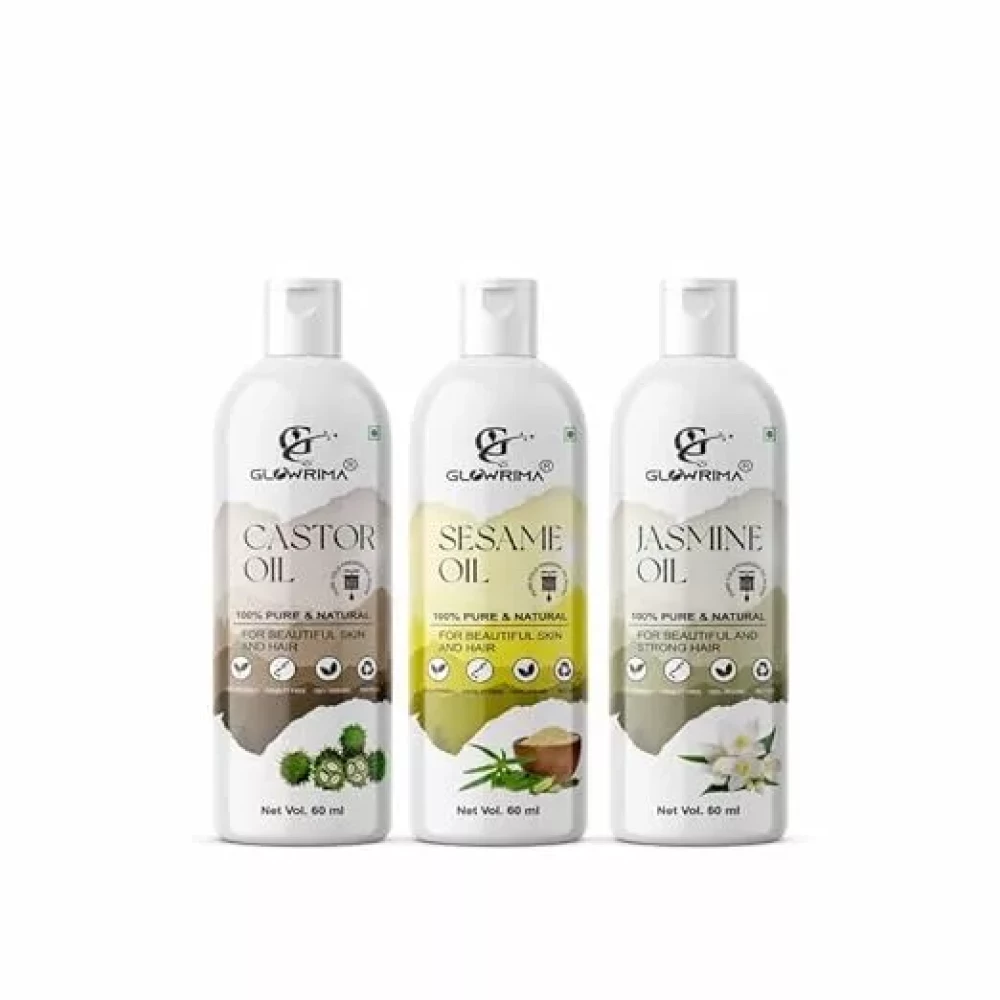 Glowrima 100% Pure Castor Oil and Sesame Oil and Jasmine Oil 60ML Pack Of 3
