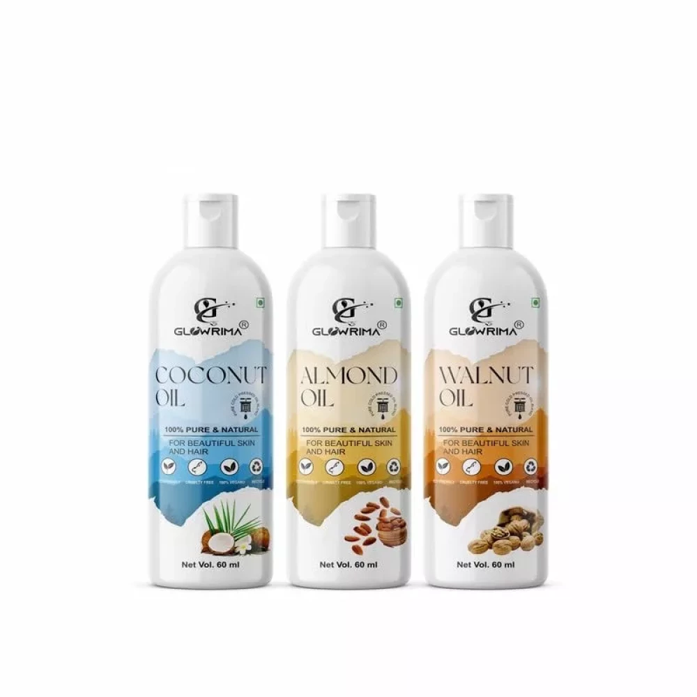 Glowrima 100% Pure Coconut Oil and Almond Oil and Walnut Oil 60ML Pack Of 3