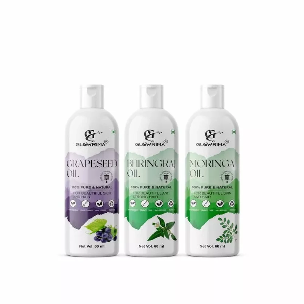 Glowrima 100% Pure Grapeseed Oil and Bhringaj Oil and Moringa Oil 60ML Pack Of 3