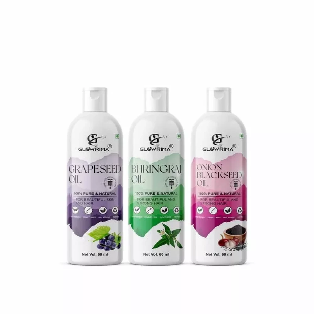 Glowrima 100% Pure Grapeseed Oil and Bhringaj Oil and Onionblackseed Oil 60ML Pack Of 3