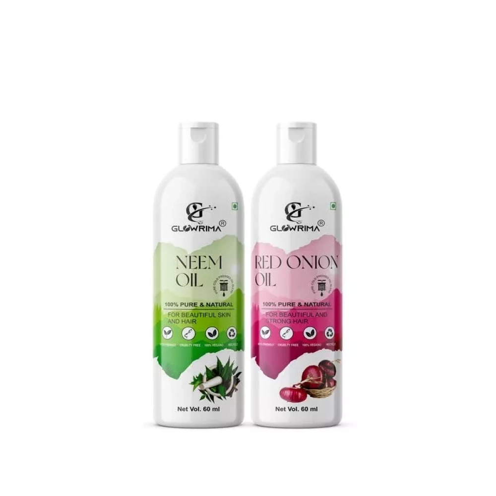 Glowrima 100% Pure Neem Oil 60ML and Red Onion Oil 60ML Combo For Hair