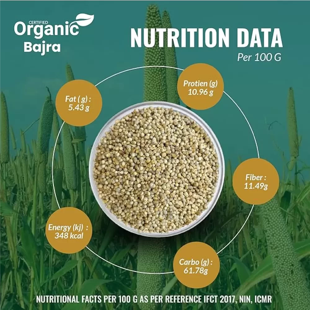 Sourced from organic farms, each pack contains 1 kg of pure and wholesome bajra, rich in essential nutrients and fiber, making it a smart choice for weight loss and digestive health.