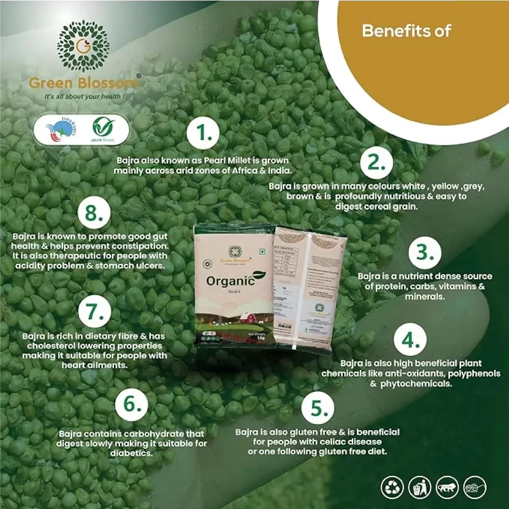 Elevate your health and cooking with Green Blossom Organic Bajra - a premium quality, whole grain pearl millet that's as nutritious as it is delicious.