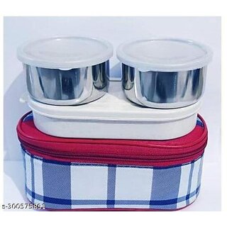 lunchbox box with bag for office use student women men girls multicolor as per stock availability multiclour set of