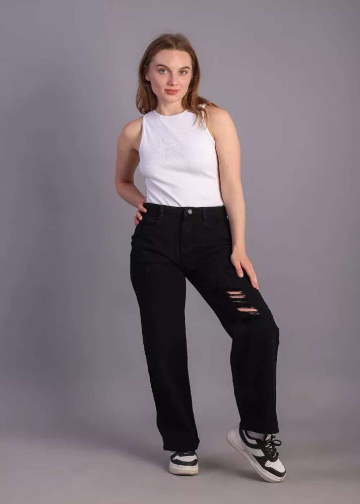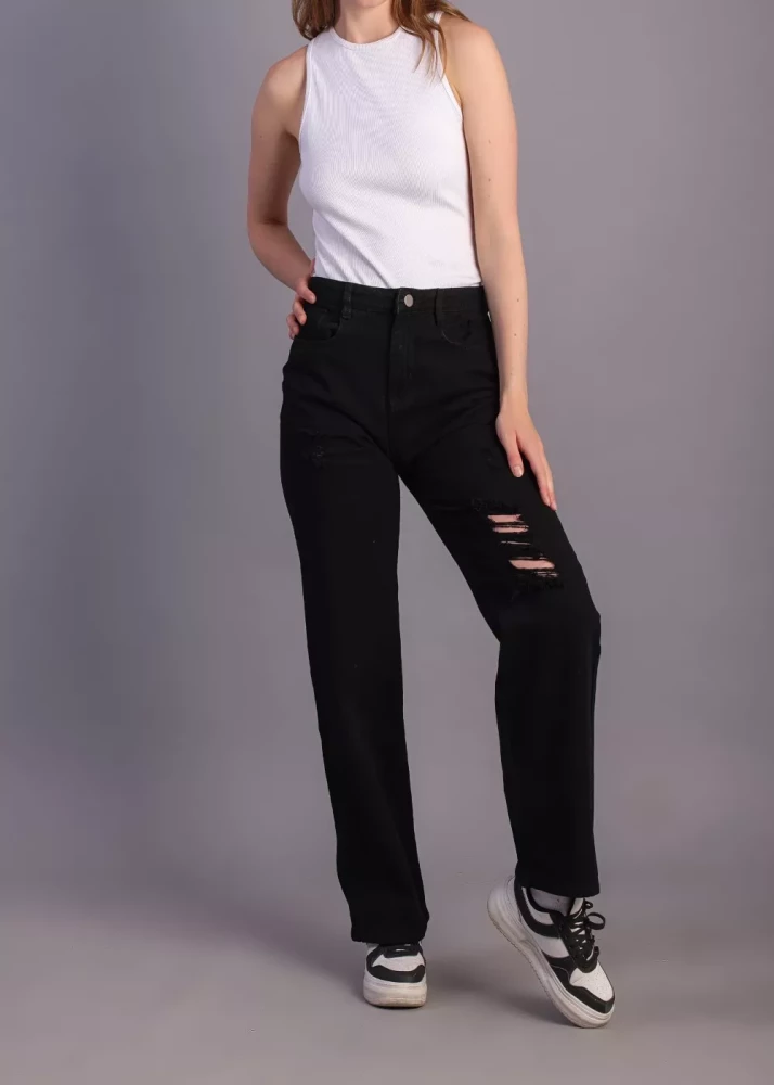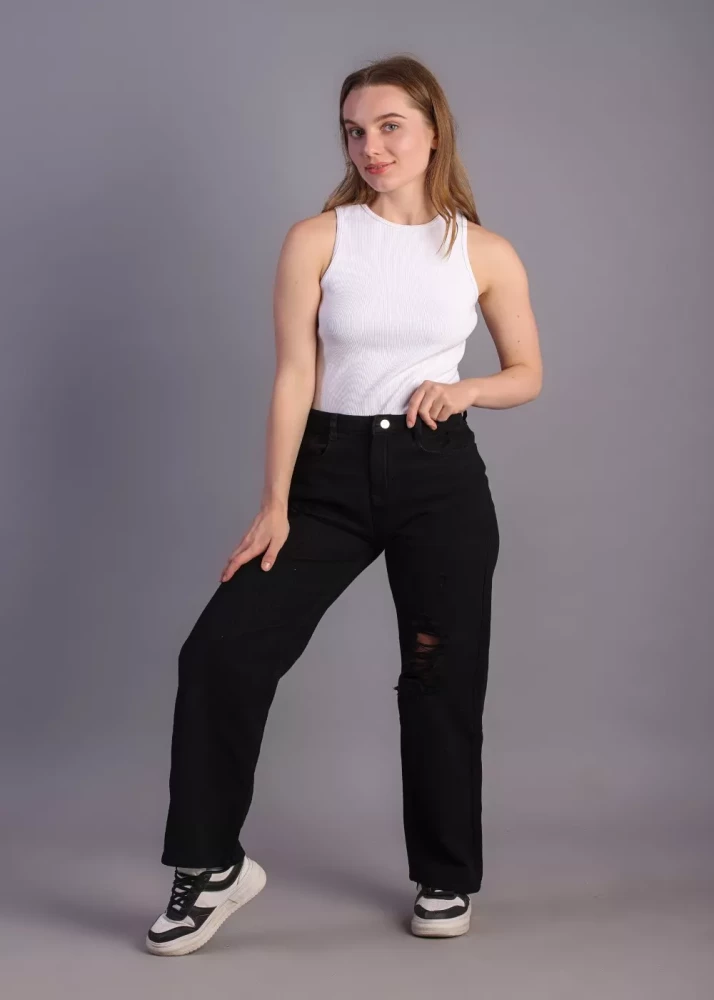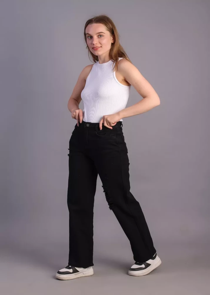 Women Black fully ribbed jeans