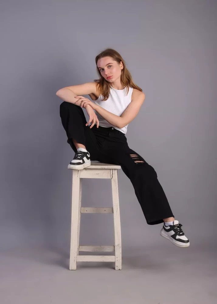 The ribbed texture adds a distinctive touch, elevating these jeans to a new level of sophistication. Despite the name, these jeans come in a stunning beige color, perfect for adding versatility to your wardrobe. Whether you're dressing up for a casual outing or a chic evening event, these jeans are sure to make a statement.