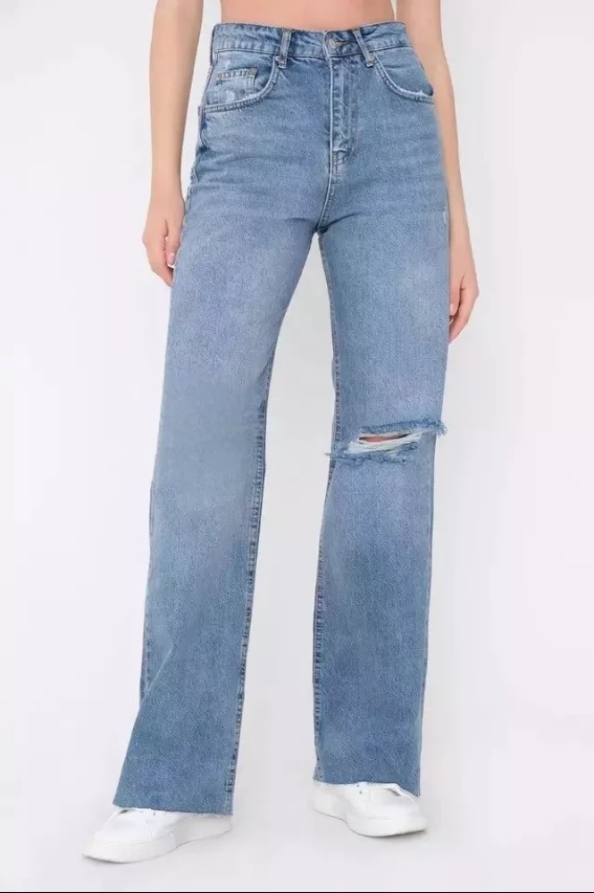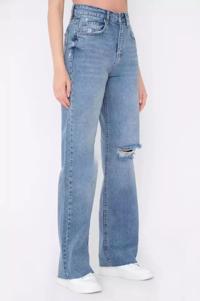 Women One knee cut jeans Blue