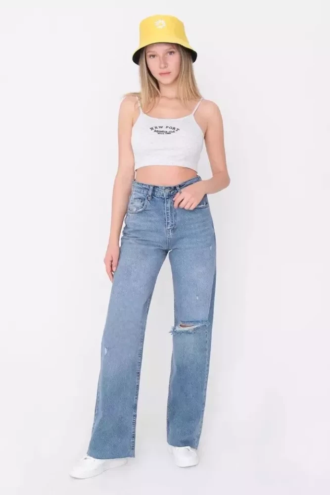Introducing our Women's Blue One Knee Cut Jeans, a trendy addition to your denim collection that combines style with comfort. Crafted from high-quality denim material, these ankle-length jeans offer both durability and flexibility for all-day wear.