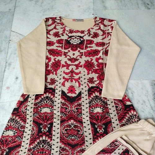 This affordable and stylish women's jaquard woolen frock leggings set is perfect for staying warm and looking your best this winter. The frock is made from high-quality jaquard wool that is soft, warm, and luxurious. The leggings are also made from wool, and they are stretchy and comfortable. This set is perfect for layering, and it can be dressed up or down for any occasion.