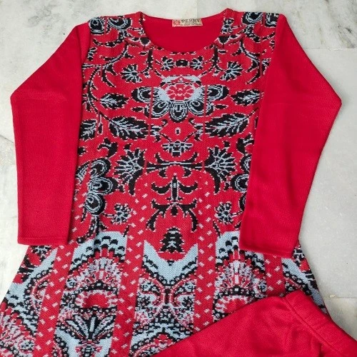This affordable and stylish women's jaquard woolen frock leggings set is perfect for staying warm and looking your best this winter. The frock is made from high-quality jaquard wool that is soft, warm, and luxurious. The leggings are also made from wool, and they are stretchy and comfortable. This set is perfect for layering, and it can be dressed up or down for any occasion.