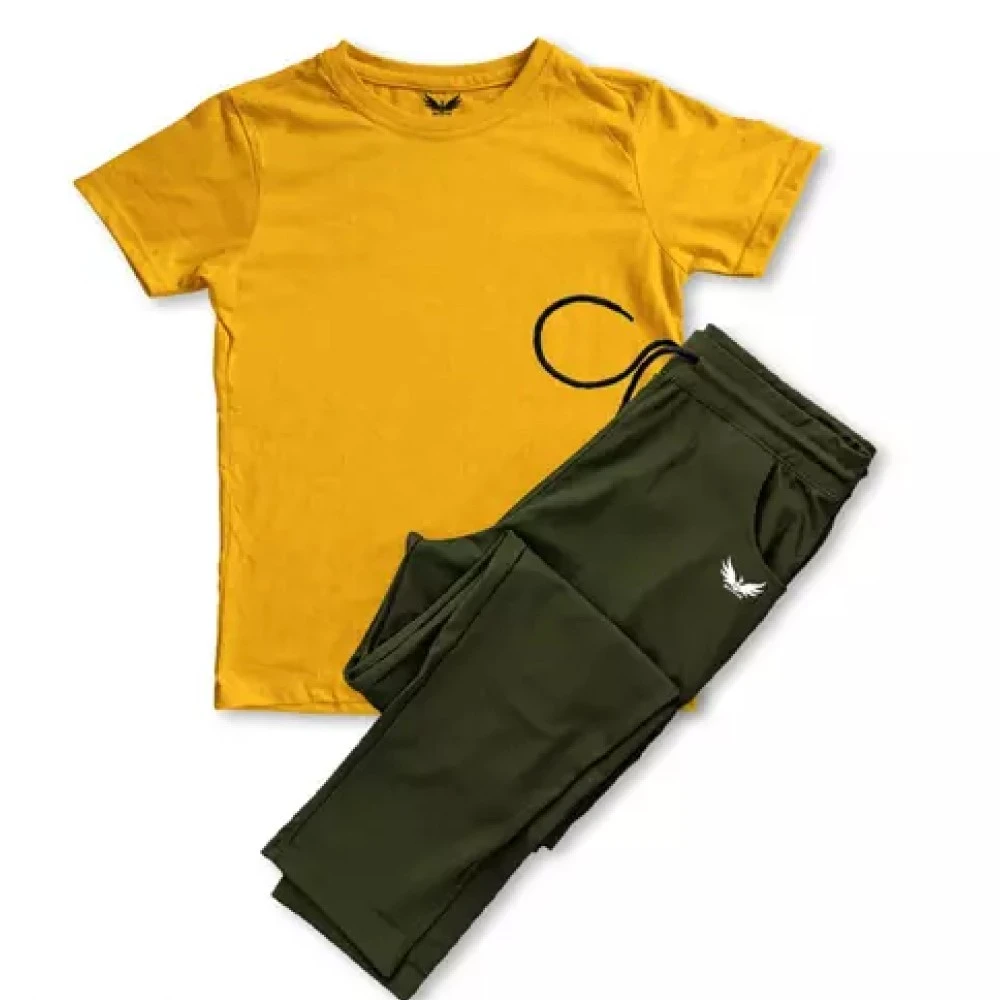 This combo includes a cotton T-shirt and a pair of track pants that are comfortable and durable. The T-shirt has a solid color and a round neck, while the track pants have a printed pattern and an elastic waistband. The short sleeves and the breathable fabric keep you cool and fresh. This combo is ideal for gym, jogging, or casual wear. You can choose from different colors and sizes to suit your preference. This combo is a great value for money and a must-have for any fitness enthusiast.