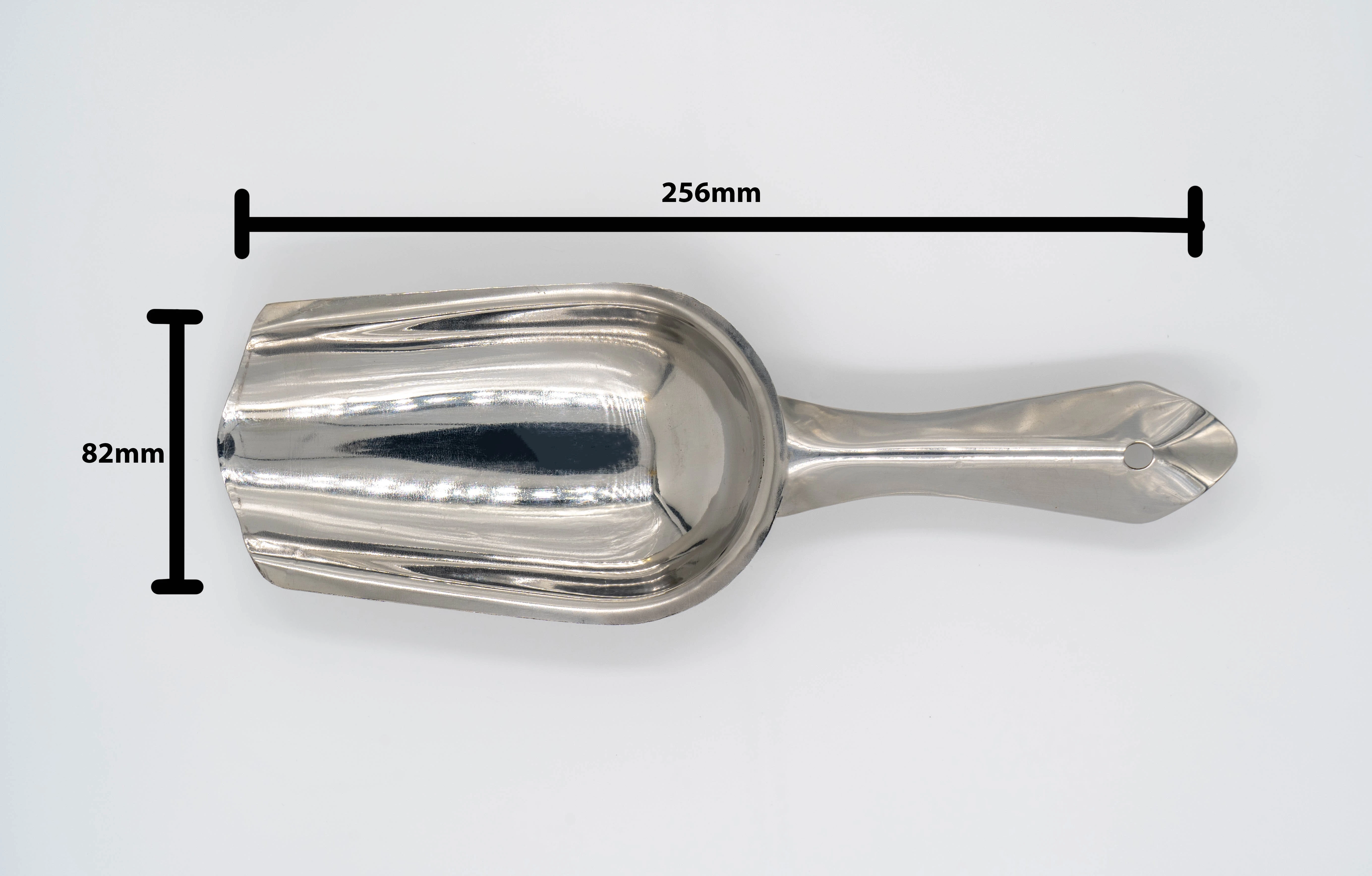 An ideal scoop shovel for ice cubes, rice, grains, flour, sugar, etc. This scoop shovel is suitable for using in measuring & scooping out anything from ice cubes & flour. Stainless Steel shine doesn't looses over a longer period of time. This shovel is designed with a joint.