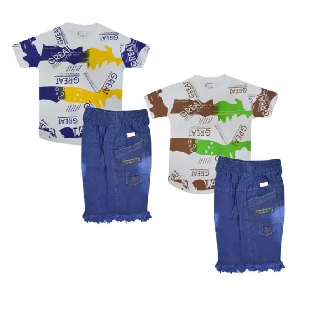 This set includes one cotton hosiery t-shirt and one pair of denim shorts, providing a complete outfit that's ready to wear. The coordinated design ensures effortless styling for a polished and put-together look that's perfect for any occasion.