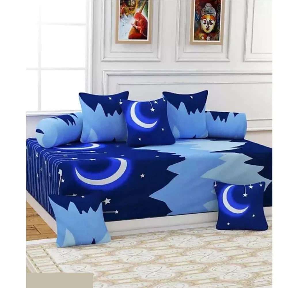 Description: Crafted from Superfine Satin Finish Cotton, this Diwan Set not only offers a luxurious feel but also showcases a vibrant blue color that adds a refreshing and modern touch to your living space. The printed pattern enhances the visual appeal, making it an eye-catching addition to your diwan.