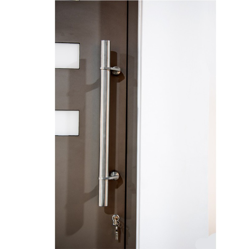 The KPD-1006 model is an openable door designed for an outside view with a right-hand out-swing. Constructed from high-quality aluminium, this door is built to withstand the elements while offering a modern, semi-glossy appearance. The handle set features a stainless steel finish , ensuring longevity and resistance to corrosion.