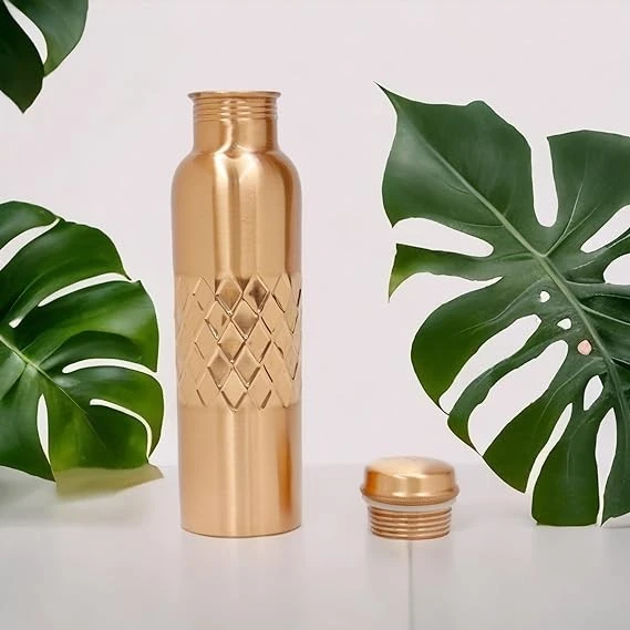 Experience the perfect blend of elegance, functionality, and wellness with the KUVI Copper Charge 1000ml Middle Diamond Water Bottle.