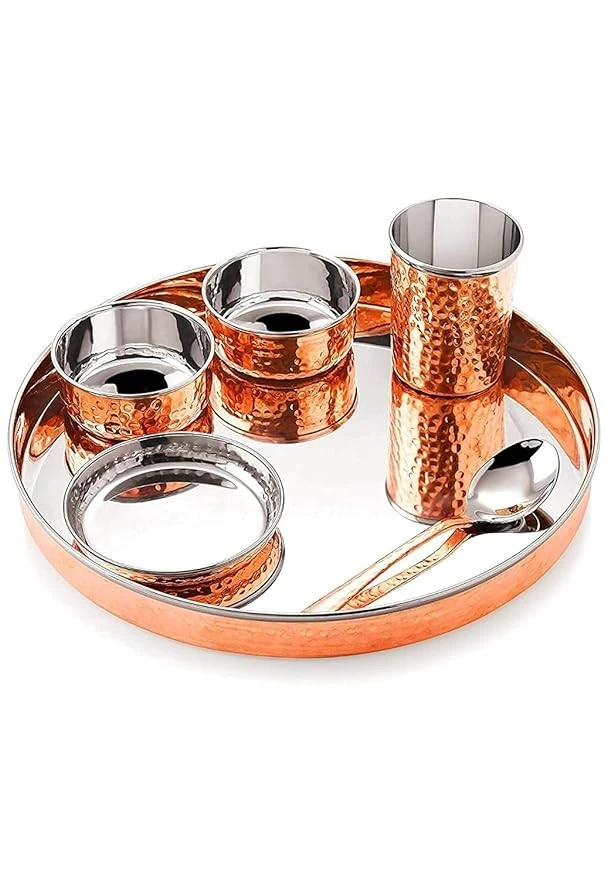 KUVI Stainless Steel and Copper Traditional Kitchen Dinner Royal Thali Set Pack of 2