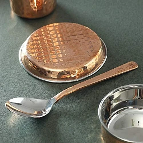 KUVI Copper Dinner set is one of its kind in the world made. We use the world's purest copper and the finest technology in the production of these dinner sets. We are leading brands of a wide range of copper products including Copper Water Pot, Copper Jugs, Mugs, Handcrafted items, and gift items. Our main objective is to establish consumer satisfaction in manufacturing and exporting high-quality copper products and our other products. We hold strong excellence in services, products-quality, commitment, compliance, and competitive rate structure. KUVI logos are displayed on the images to maintain the authenticity of the pictures. The logos are not actually printed on the products. Health Benefits of buying KUVI Pure Copper Products.