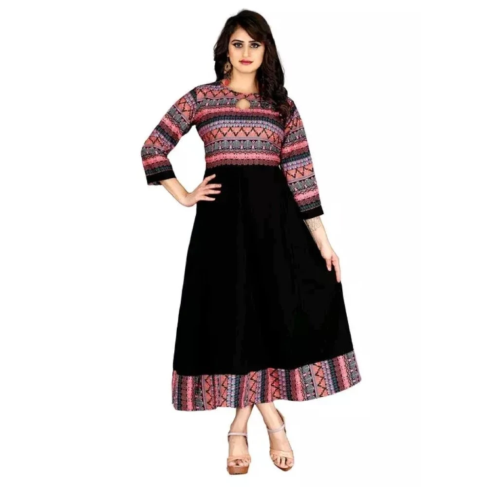 Introducing BLACK NEW ANARKALI - A Timeless Crepe Anarkali Dress with Three-Quarter Sleeves and Elegant Print