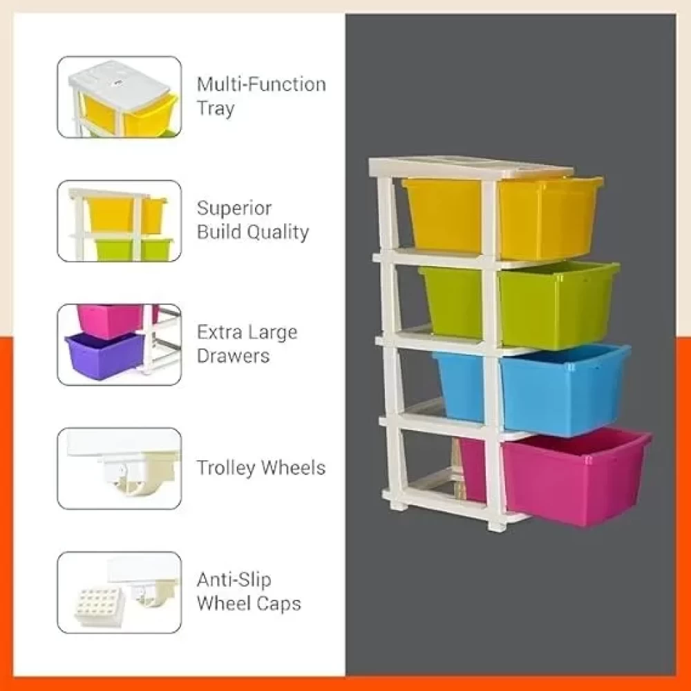 4XL MultiColor Modular Drawer Storage System with Trolley Wheels