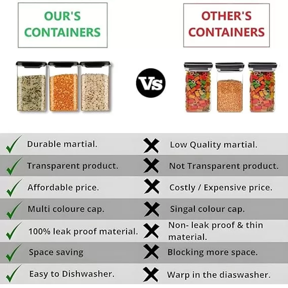 • Airtight & Leak-Proof Design: Keeps food fresh longer by preventing air and moisture from entering, ensuring your kitchen stays organized and your ingredients stay fresh.