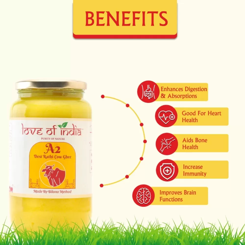 It's the Finest ghee made from A2 milk, using the Vedic process of churning yogurt and filtering as mentioned in Ayurveda. Being 100% natural, Love of India’s Desi Rathi Cow A2 ghee is perfect for everyday cooking.