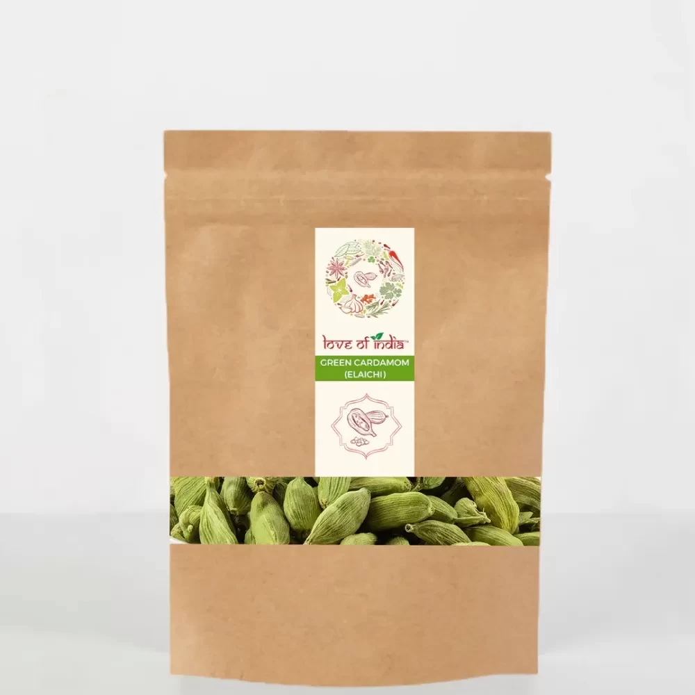 Love of India's Green Cardamom (Elaichi), known as the Queen of Spices, has a delicate sweetness & a beautiful aroma when added to food. Green cardamom pods have a herbal, citrus, slightly sweet flavor. It's a good option for both sweet and savory dishes. It is used to flavor tea, sweets/desserts, lentils, and rice. It's ideal in curries, halwas, baked goods, and biryanis.