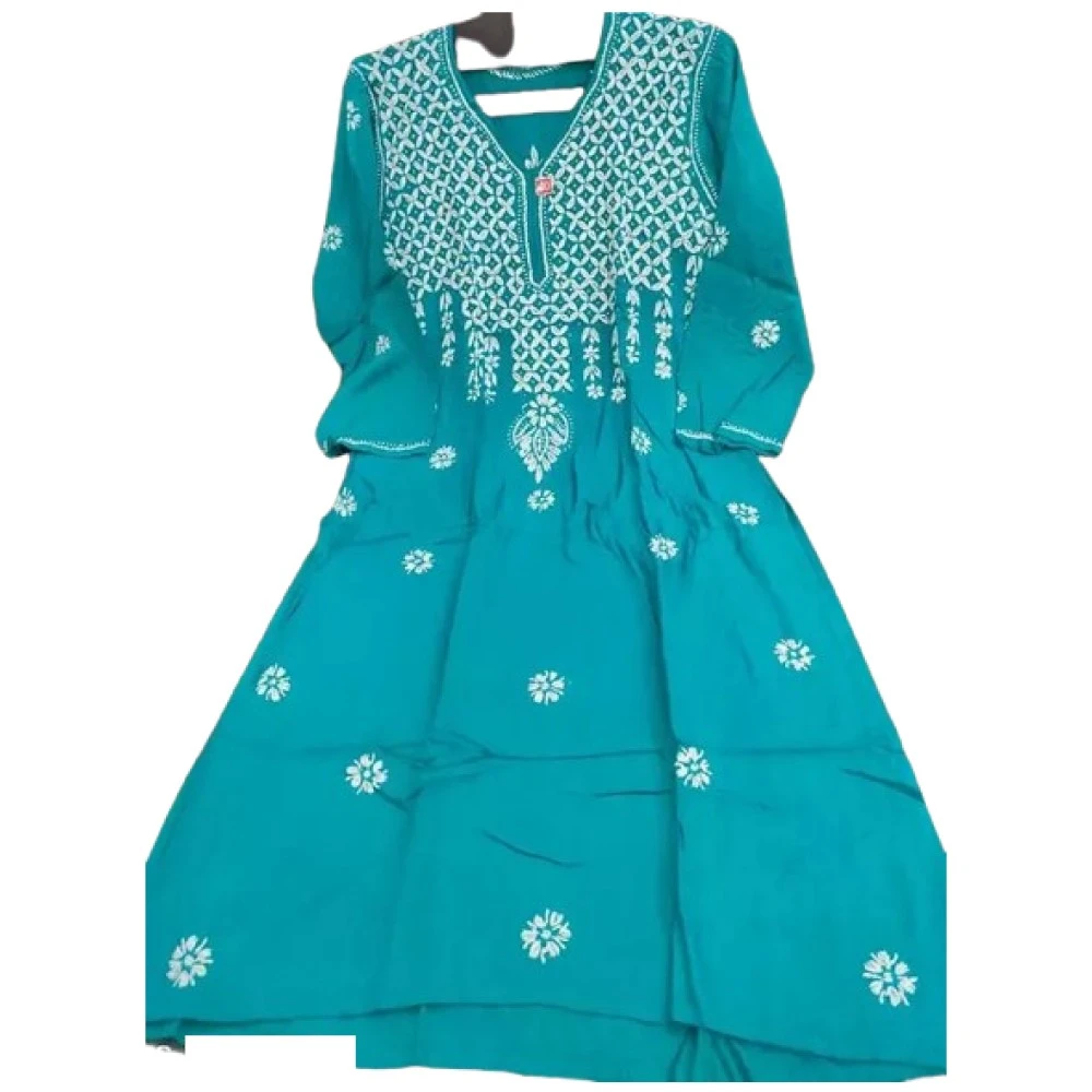 Crafted from premium quality rayon fabric, these kurtis offer a luxurious feel and a flattering drape. The rich blue hue adds a touch of sophistication to your ensemble, making it perfect for various occasions.