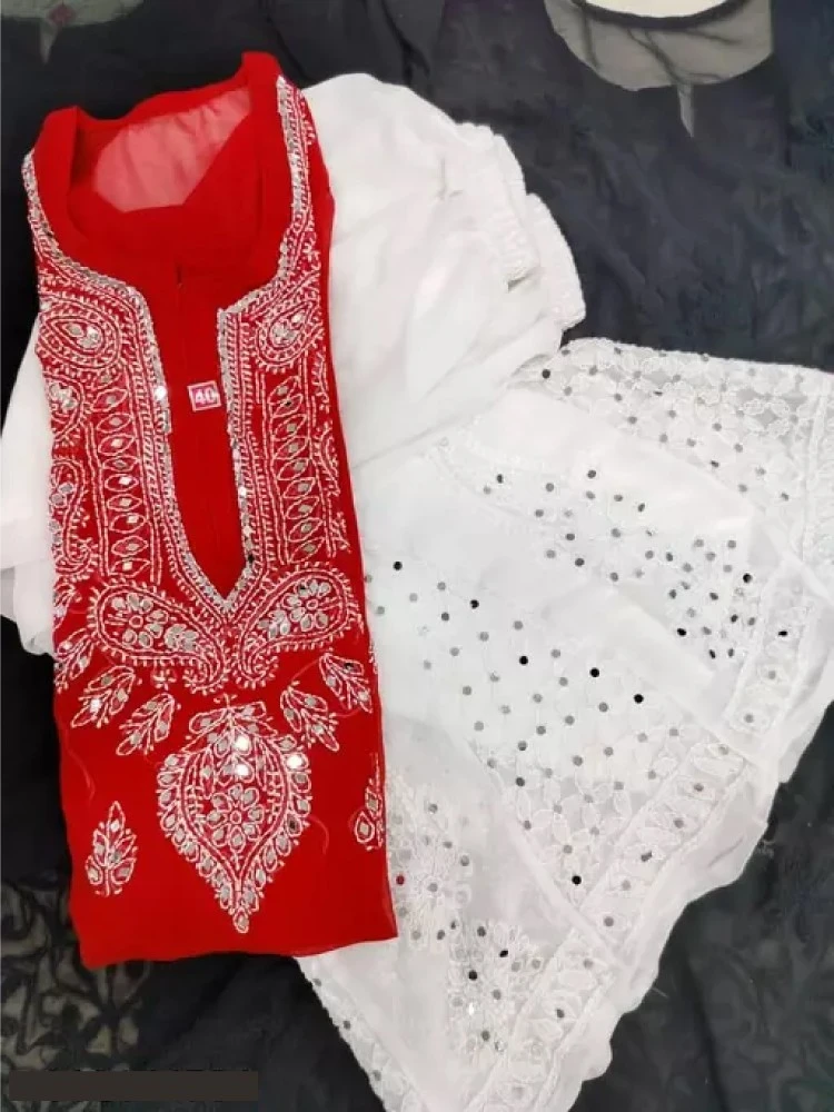Whether you're attending a wedding, festival, or any special event, the Red Georgette Gaala Booti Chikankari Kurti ensemble is a perfect choice for those who appreciate timeless elegance and impeccable craftsmanship.