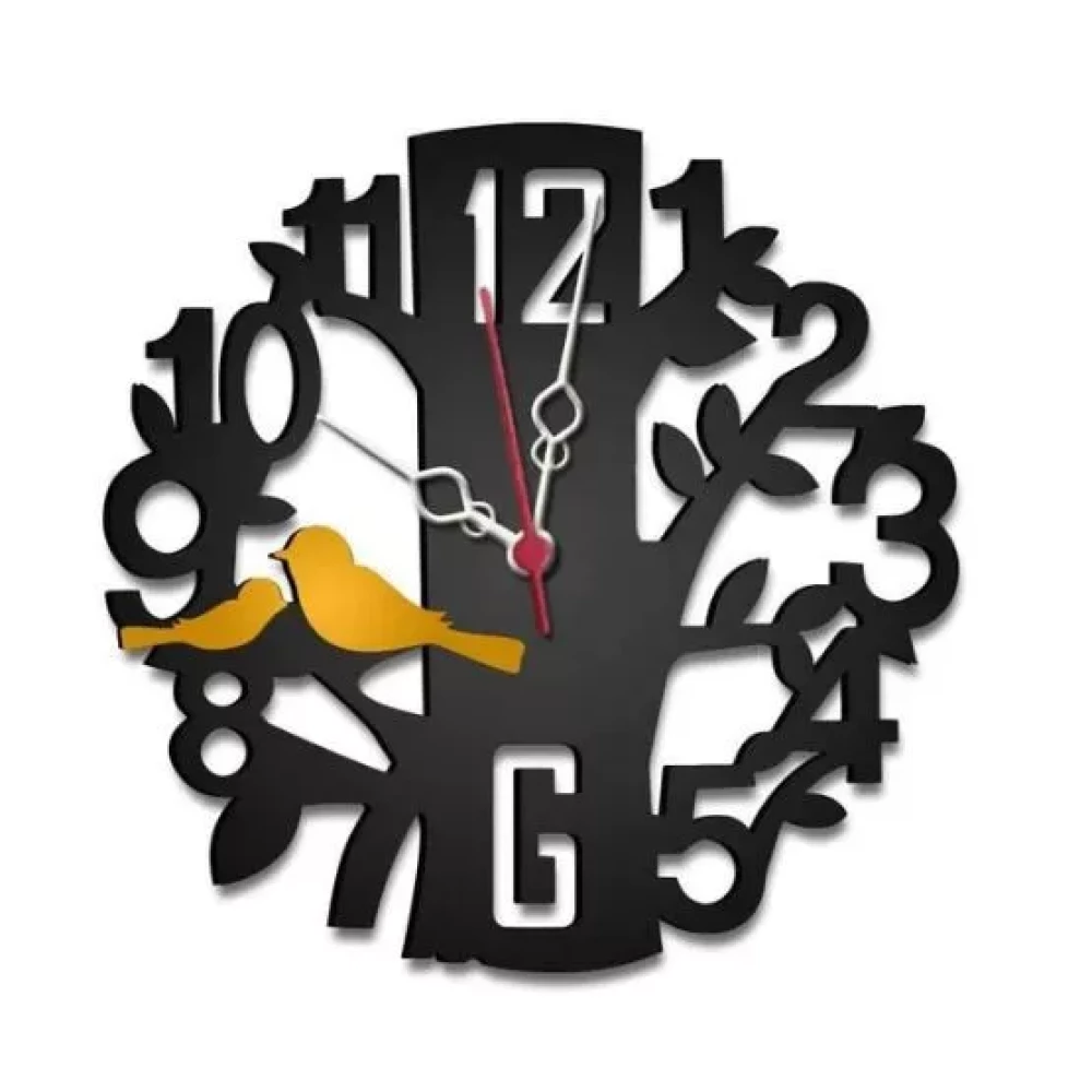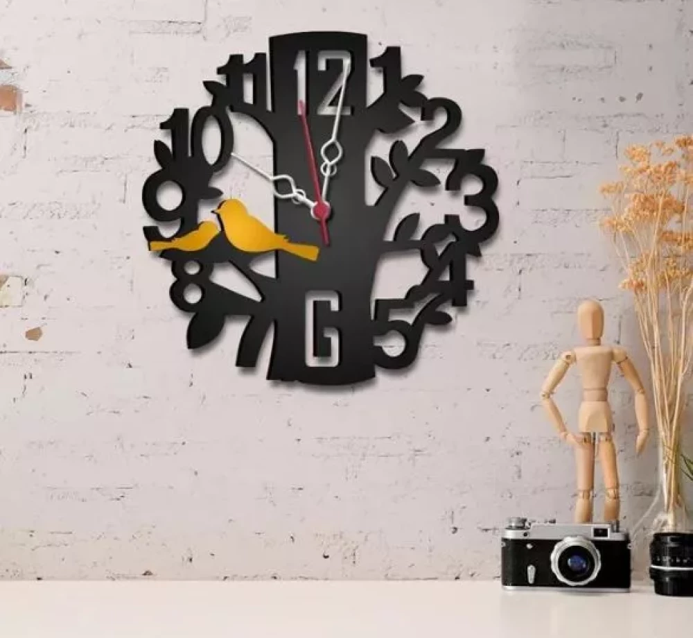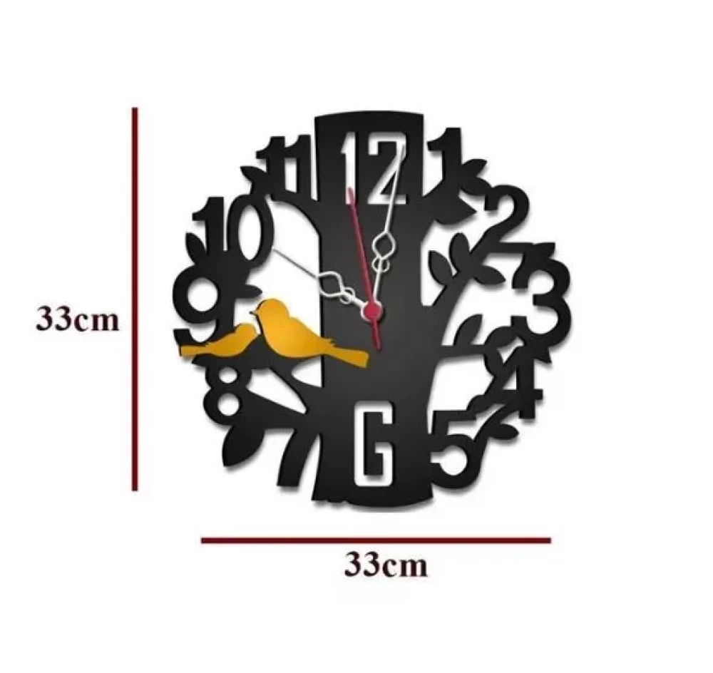 The impressive Designer and trendy Black Tree with Yellowbirds Wooden Wall Clock is made of a laser cut 7mm thick piece of MDF wood, professionally painted with high-quality paint, protected with a layer of transparent matte finish varnish.