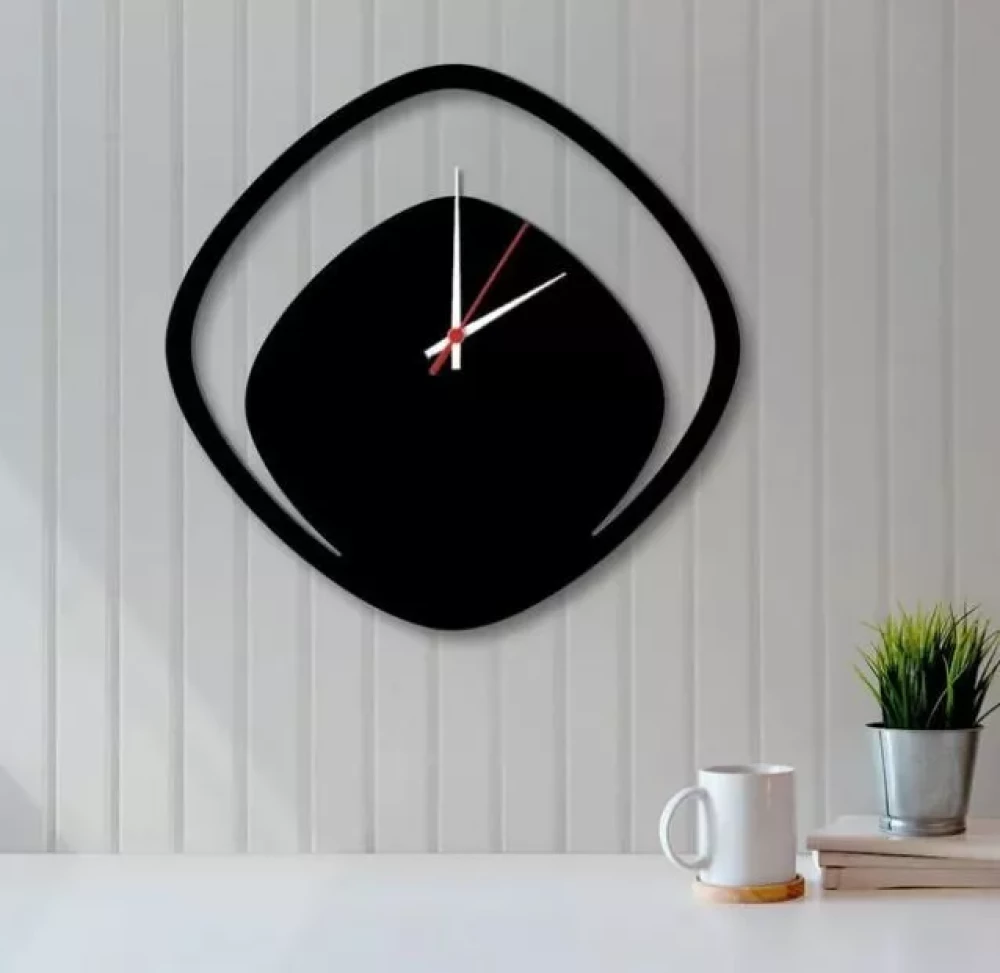 The impressive Designer and stunning Black Boomerang Shape Wooden Wall Clock is made of a laser cut 7mm thick piece of MDF wood, professionally painted with high quality paint, protected with a layer of transparent matte finish varnish.