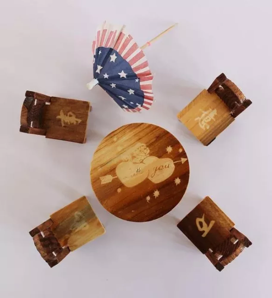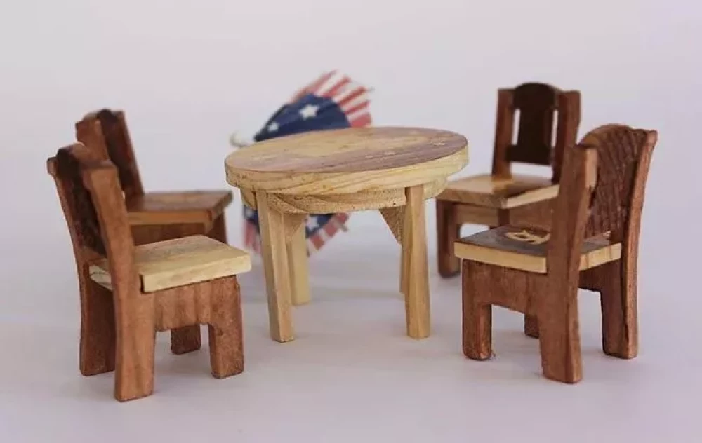 With its charming brown color, this set adds a touch of warmth and sophistication to any playroom or nursery decor. The natural grain and finish of the rubberwood enhance its aesthetic appeal, creating a timeless and inviting atmosphere for imaginative play.
