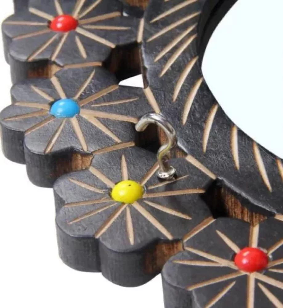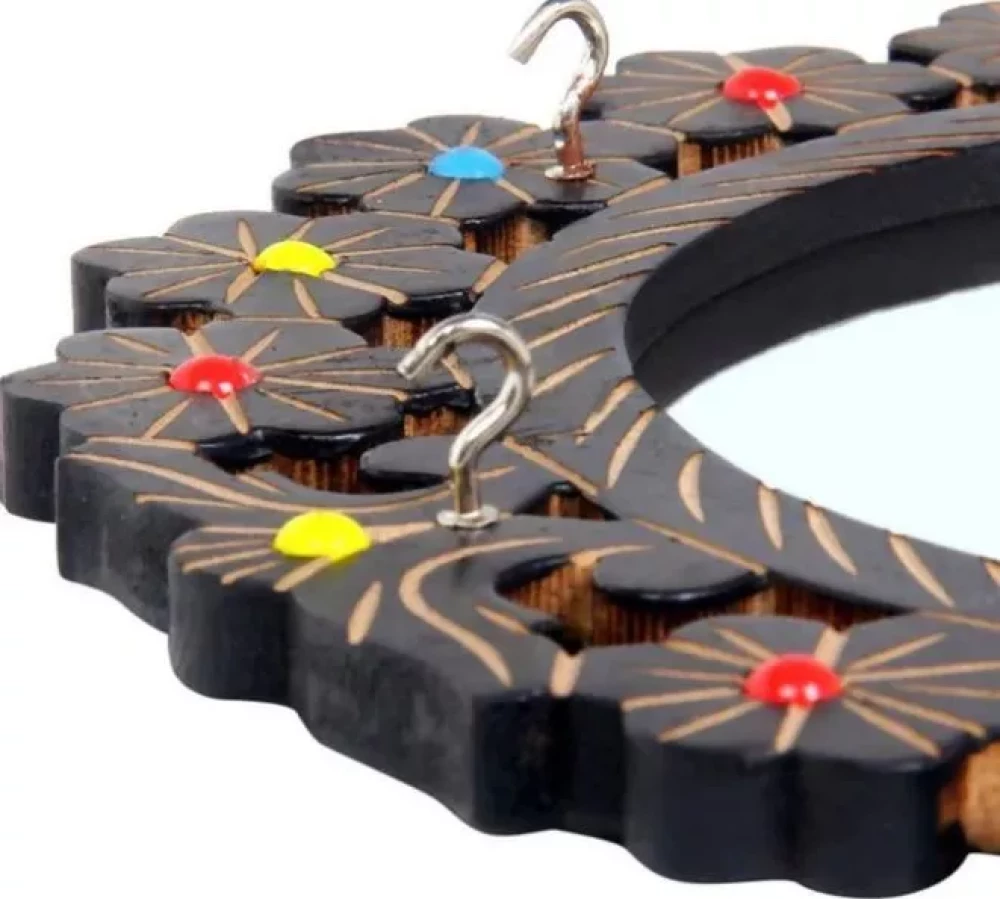 Inspired by the designs of this beautiful product has been developed to make you enable to look at your face in style whenever you wish to. Made of wood, this product has wrought iron elements, which not only adds to the stylishness of this product but also makes it hardy and durable. The product as per its design has been given a darkened black color to ensure that it can blend well with all kinds of home decor settings. This product is compact in shape.