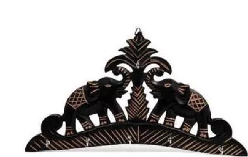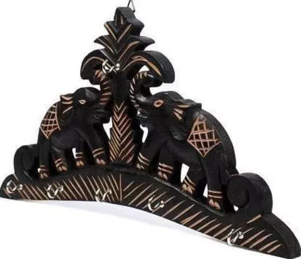 Organize in style with our Elephant Home Decorative Handcraft Key Holder, a blend of sturdy steel and wood craftsmanship. Ideal for hanging keys, jewelry, and kitchen essentials, it adds a touch of elegance to your kitchen, office, or entryway. Each piece is handmade and hand-carved by the skilled rural artisans of India, ensuring you receive a product that's not only functional but also rich in tradition. Mount it easily for accessible and stylish storage.
