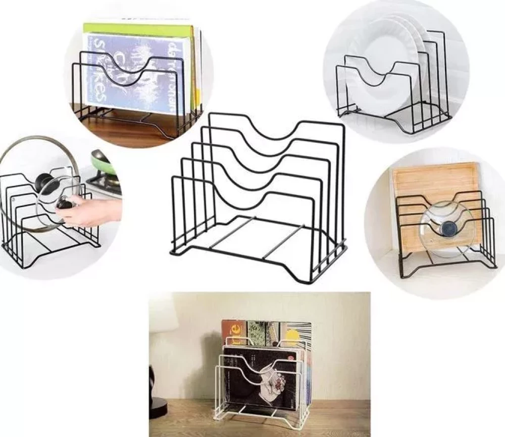 • MULTI-PURPOSE: Kitchenware organizer can be used for management of various kinds of cooking utensils, such as pan, cover, cutting board, anti-splash pan, etc., Also to be used as bookshelves.