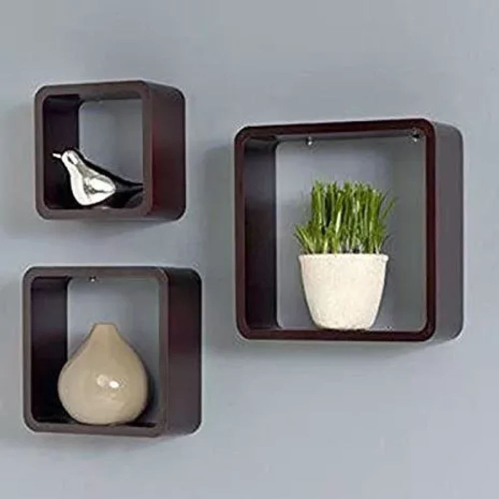 Maximize your space with our Square Shaped Cube Wall Mounted Shelf, a set of 3 in a rich brown finish. STURDY AND EASY TO INSTALL, these shelves come with clear instructions and all necessary hardware, ensuring a hassle-free setup. The SIMPLE DISPLAY SHELVES are crafted from MDF wood, perfect for showcasing your collectibles, small plants, or stuffed animals. They're not just decorative but FUNCTIONAL STORAGE SHELVES too, providing extra space to declutter your bedroom, bathroom, or kitchen.